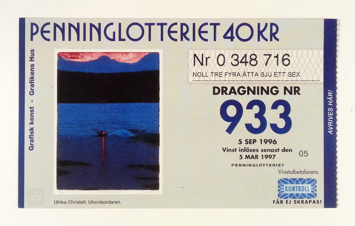 Min färgetsning ”Utombordare” publicerades på en utgåva av Penninglotterna och Grafikens Hus beställde en upplaga.