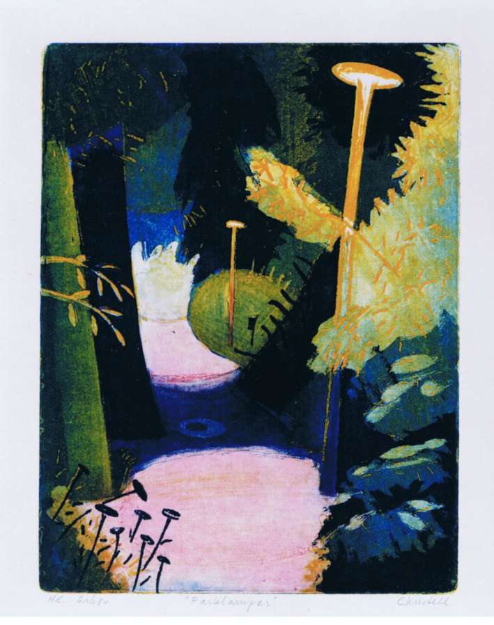 Kommunen köpte etsningarna ”Utombordare”, ”Båt och fyr”, ”Ljuskedjan” och ”Glashyddan” till Stadshusets konstsamling.