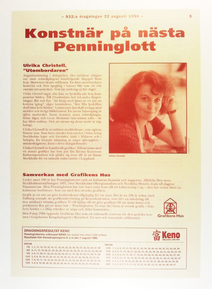 Sponsorn Svenska Spel satsade på uppbyggnaden av Grafikens Hus i Mariefred. Ett 50-tal konstnärer tryckte upplagor, fick sin bild på en Penninglott och deltog i utställningen ”Grafikens Lott” som året därpå visades på Grafikens Hus.
